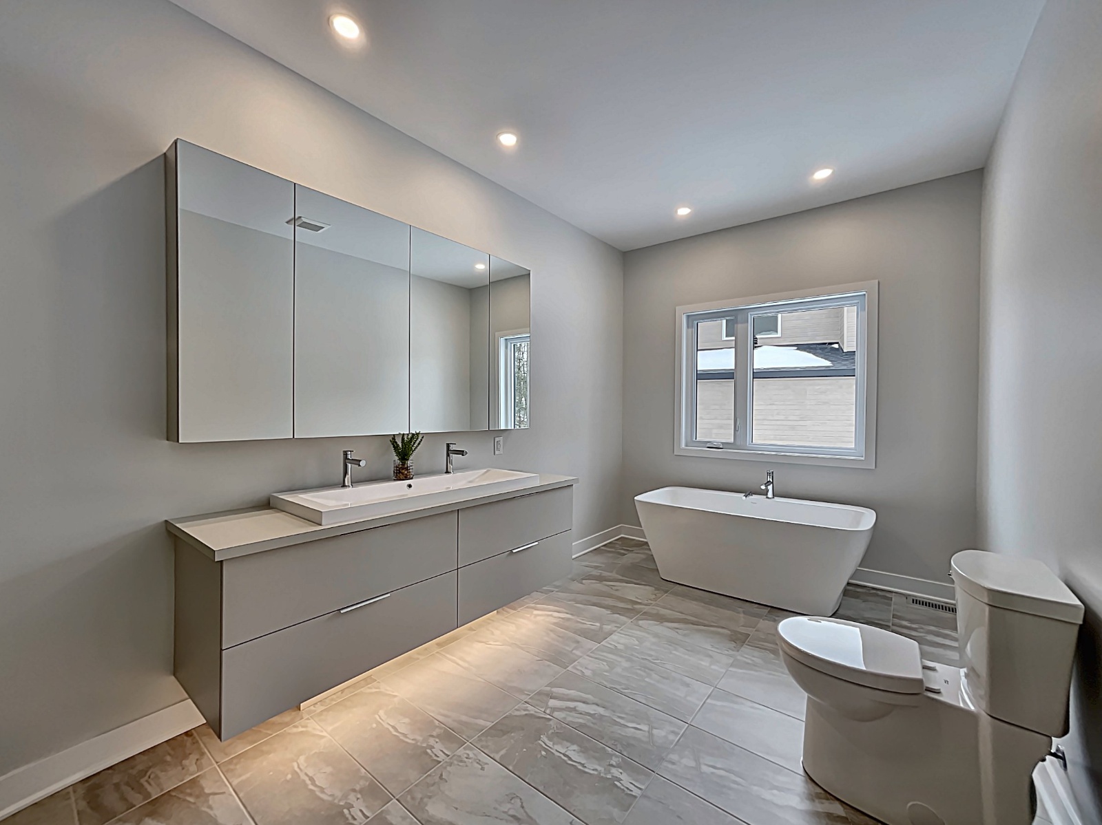 - Chambre des maîtres orientée vers la cour arrière, avec deux walk-ins généreux et une salle de bain privée, incluant un lavabo design, un bain autoportant et une douche en céramique.