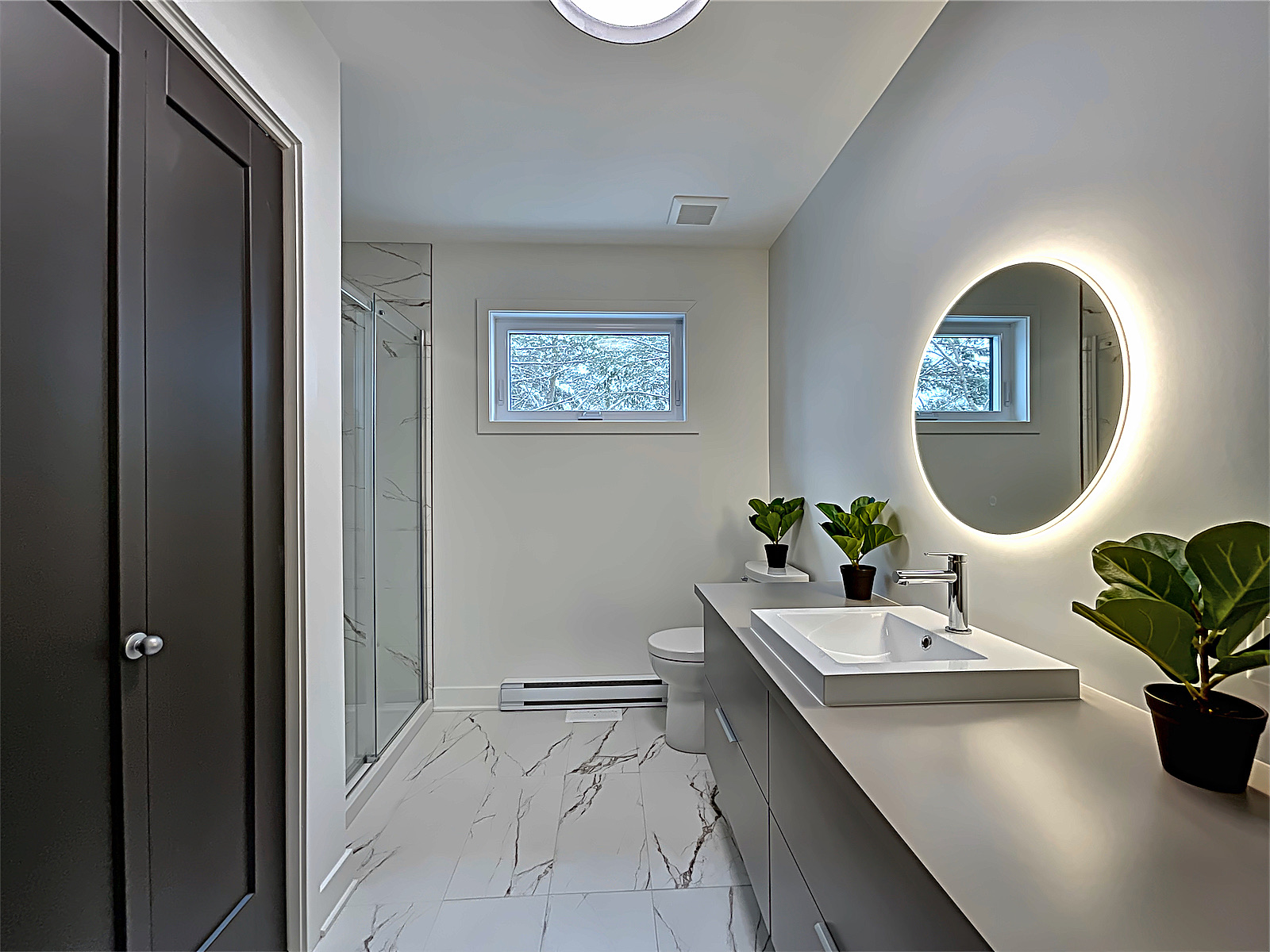 - Deuxième salle de bain à l’étage, équipée d’un miroir LED moderne.