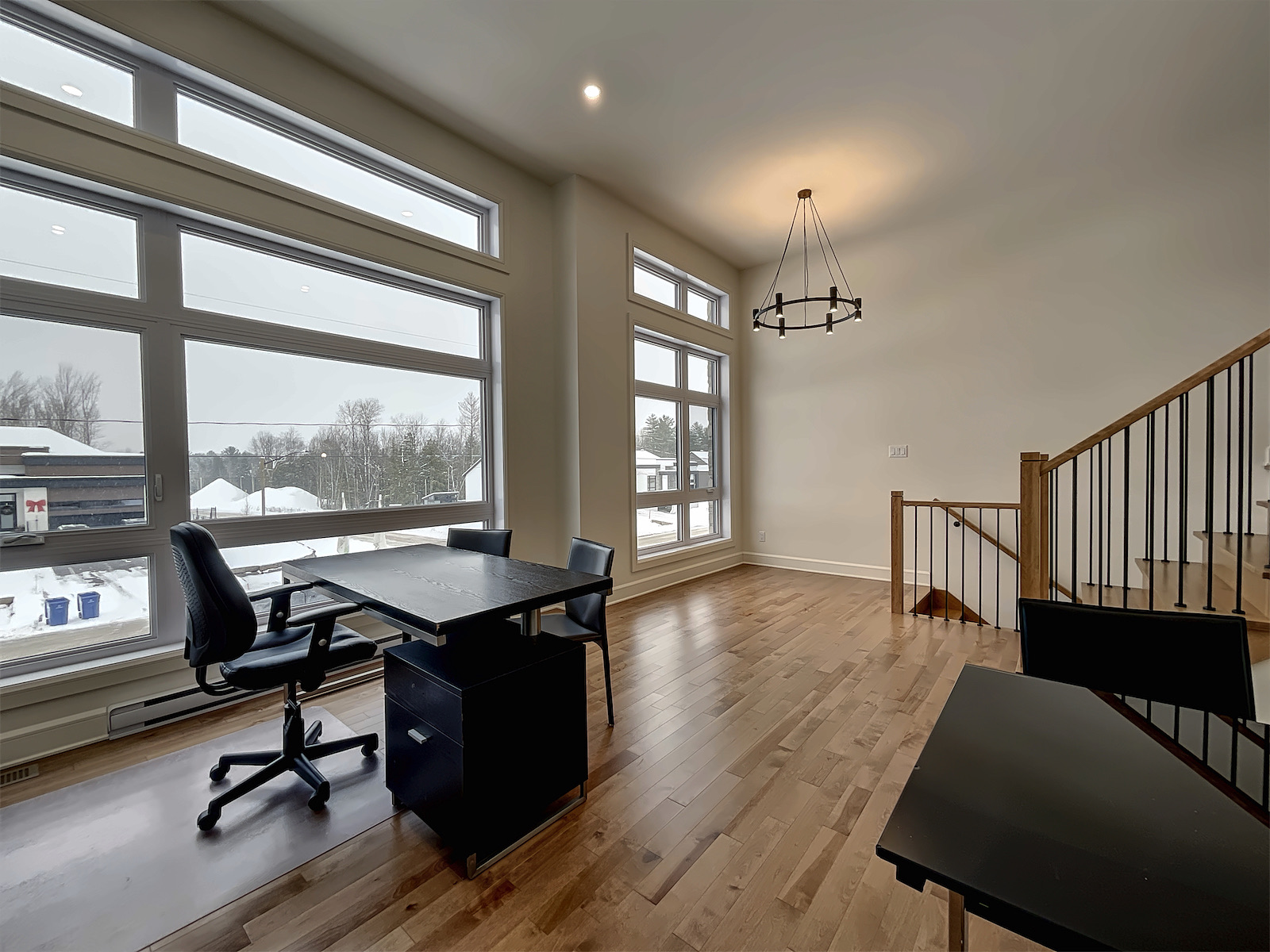 - Fenestration généreuse avec un plafond de 9′ au rez-de-chaussée et de 12′ dans la mezzanine, créant une sensation d’espace et de luminosité naturelle.